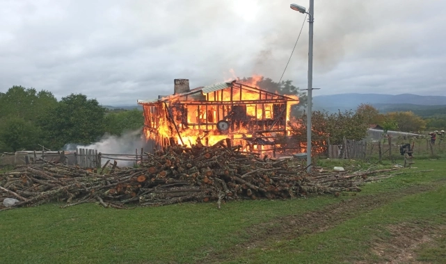 Kastamonu'nun Daday ilçesinde çıkan yangında bir ahşap ev tamamen yandı.