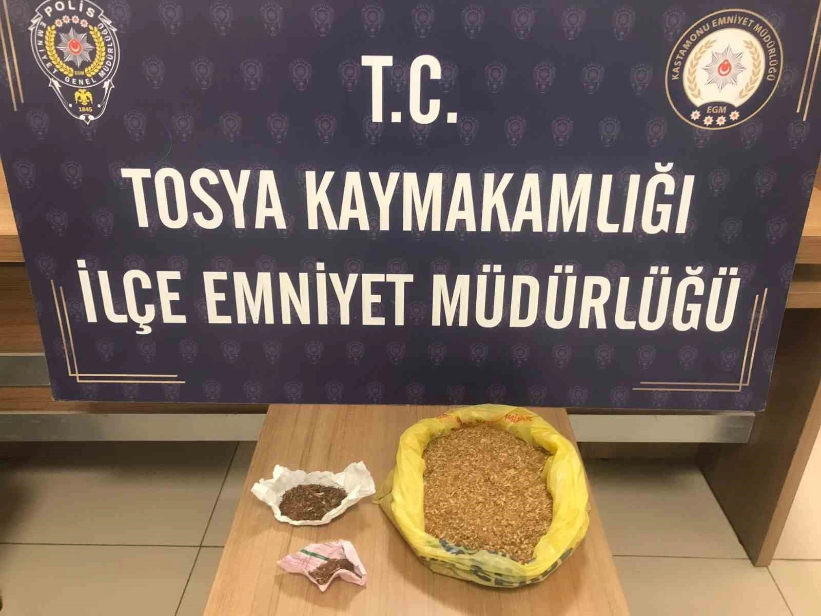 Edinilen bilgiye göre, Tosya İlçe Emniyet Müdürlüğü ekiplerince Tosya ilçesinde durdurulan bir araçta şüphe üzerine arama yapıldı. Aramada 20 gram amfetamin ile 750 gram kıyılmış tütün ele geçirildi. Araçta bulunan 3 şahıs ekipler tarafından gözaltına alındı. Şahıslar hakkında adli işlem başlatıldı.
