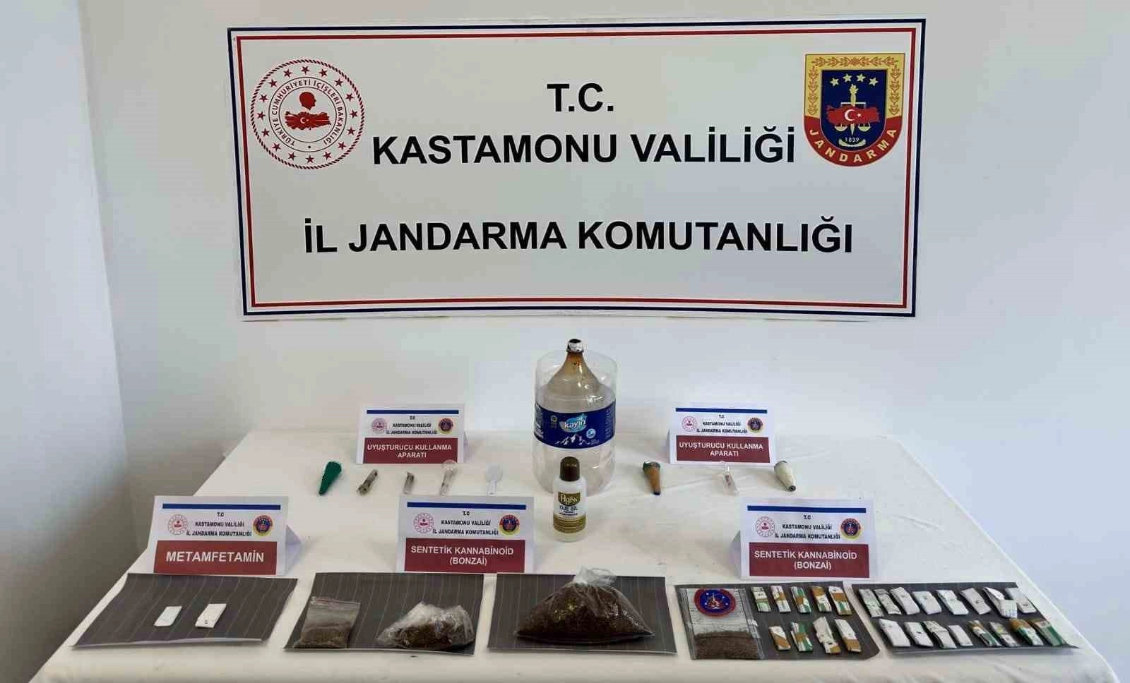 Edinilen bilgiye göre, Kastamonu İl Jandarma Komutanlığı ekiplerinin uyuşturucu madde imal ve ticaretinin önlenmesine yönelik çalışmalarıçerçevesinde Tosya ilçesinde 6 şahsın üst ve ikametlerinde arama yapıldı. Yapılan aramada, satışa hazır 28 paket halinde 247 gram kannabinoid, metamfetamin, kubar esrar, sentetik ecza hapı ve extacy ele geçirildi.