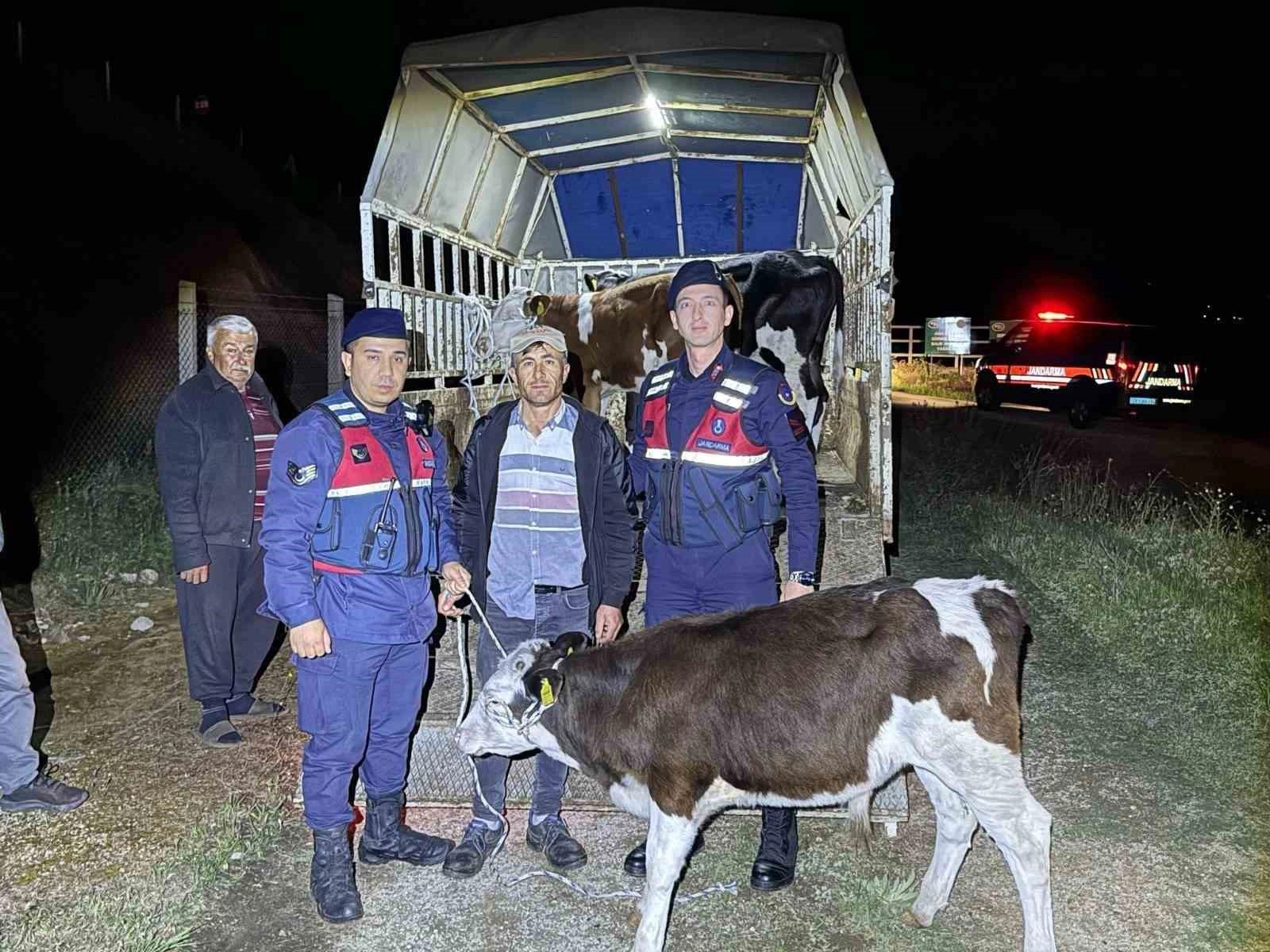 Aydın'ın Çine ilçesinde kaybolan 3 adet büyükbaş hayvan jandarma ekipleri tarafından yapılan çalışmalar neticesinde 4 kilometre uzaklıktaki bölgede bulunarak sahibine teslim edildi.