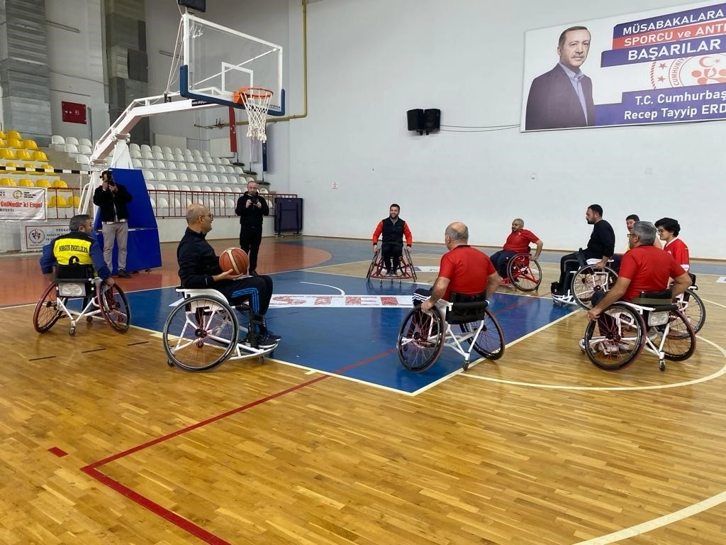 Sorgun Kaymakamı İhsan Emre Aydın, 3 Aralık Dünya Engelliler Günü dolayısıyla tekerlekli sandalyeye oturarak, engelli sporcularla basketbol oynayıp özel eğitimli bireylerle de voleybol maçı yaptı.