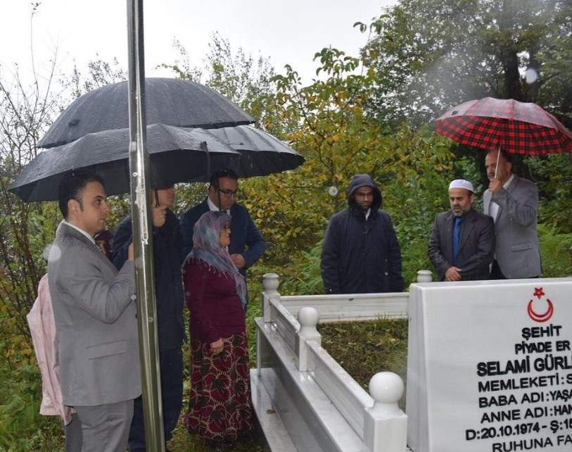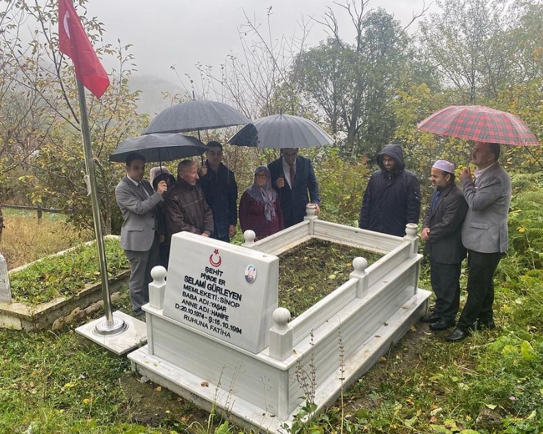Şehit ailesi ile bir süre sohbet eden ve hayır dualarını alan Kaymakam Hasar, şehit ailesini Sinop Valisi Dr. Mustafa Özarslan ile telefonda görüştürerek ihtiyaçlarını aktardı. Sonrasında şehit Selami Gürleyen’in kabri başında dualar edildi.