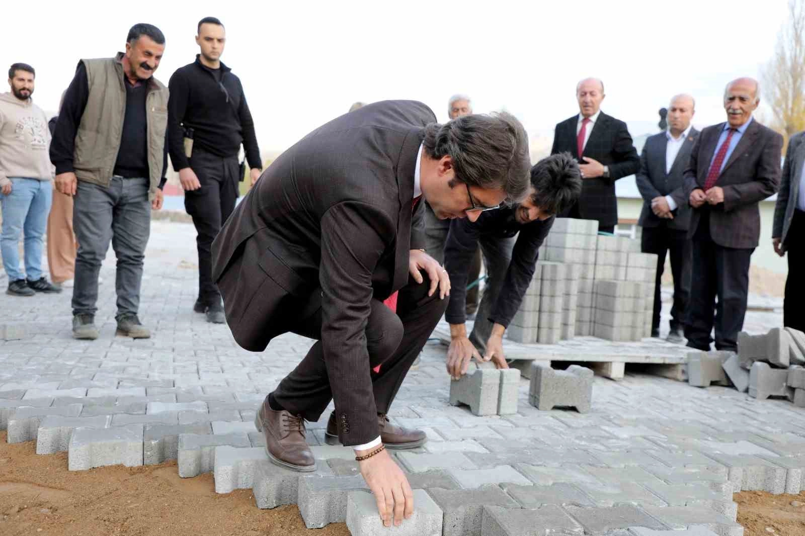 Van'ın Erciş Kaymakamı ve Belediye Başkan Vekili Murat Karaloğlu, parke taşı döşeyip asfalt makinesini kullandı.
