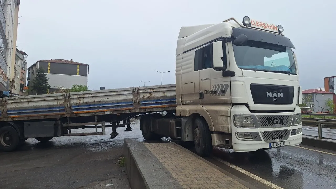 Alınan bilgiye göre, M.E. (55) idaresindeki 38 AIP 913 plakalı tır, Samsun-Sinop kara yolu Kavakpınar Mahallesi'nde yük boşalttıktan sonra ana yola çıkarken önce kaldırıma, ardından park halindeki bir otomobile çarptı.