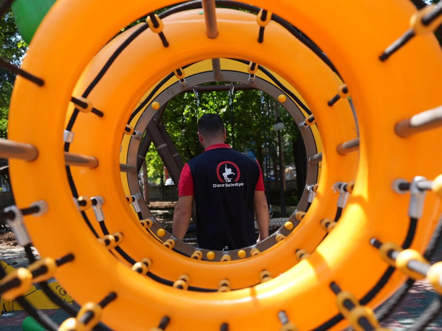 Düzce Belediyesi'nin şehir merkezindeki Kent Park'ta başlattığı tamir, bakım ve onarım çalışmaları devam ediyor. Adeta yeniden inşa edilen parkta, yeni çocuk parkının montajı tamamlanırken, yürüyüş yollarının ve yeşil alanların yapımı devam ediyor.