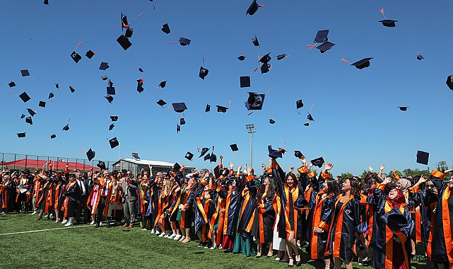 Tören sonunda öğrenciler, hep birlikte keplerini fırlatarak, mezun olmanın coşkusunu doyasıya yaşadı.