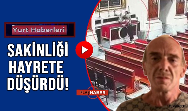 Kiliseye girerek ibadet esnasında kullanılan sembolü çalan güvenlik kamerasına yansıdı. Görüntülerde, şüphelinin sembolü çalarak olay yerinden ayrıldığı görülüyor.