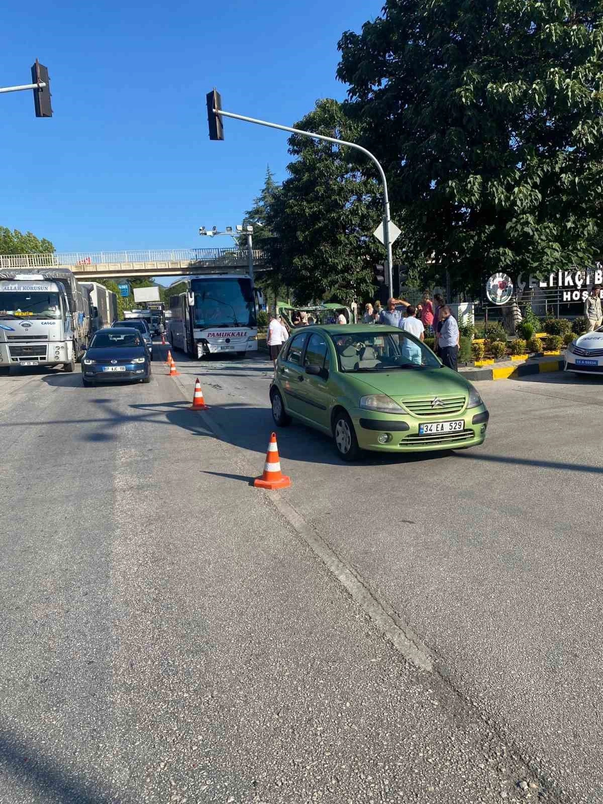 Kaza, sabah saatlerinde Çeltikçi ışıklı kavşakta meydana geldi. Alınan bilgiye göre, Nazmi K.'nin kullandığı 45 ZD 400 plakalı Mercedes marka yolcu otobüsü, Burdur istikametinden Antalya istikametine seyir halindeyken kavşağa geldiği sırada kırmızı ışıkta bekleyen Uğur G.'nin kullandığı 34 EA 529 plakalı otomobile çarptı.