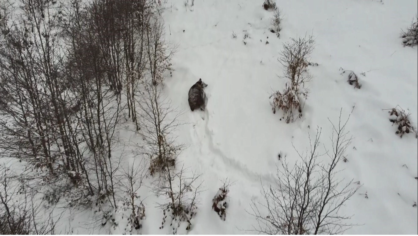 Ordu ve civar illerde bu yıl şubat ayı gelmesine rağmen beklenen kar yağışının olmaması nedeniyle kış uykusuna yatmayan ayılar, dron kamerasına yakalandı.