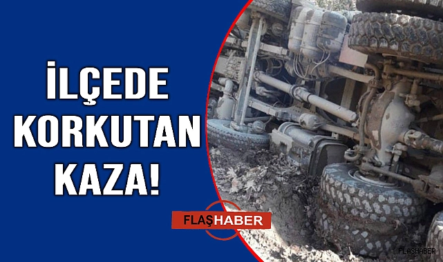 Konrolden çıkan kamyon şarampole devrildi