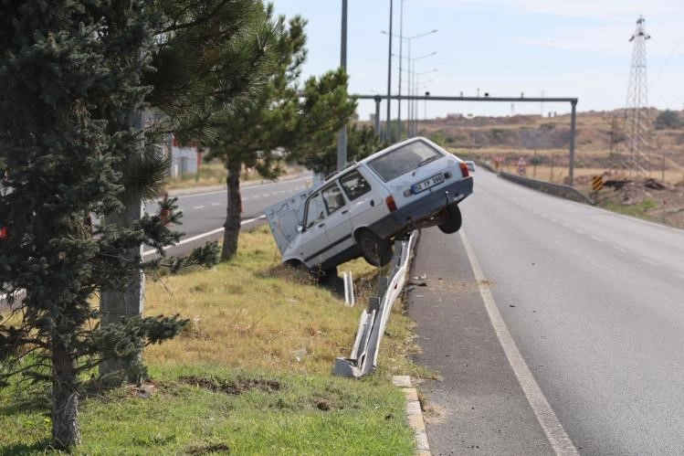 Nevşehir'de kontrolden çıkan otomobil önce orta refüje, sonrada bariyer demirlerine çıkarak durabildi. Kazada 1 kişi yaralandı.