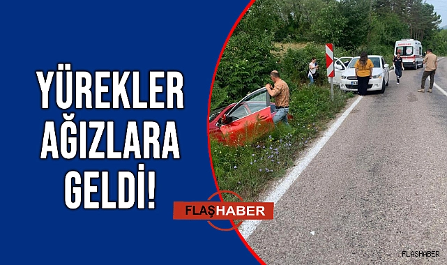 KONTROLDEN ÇIKAN OTOMOBİL ŞARAMPOLE DEVRİLDİ!