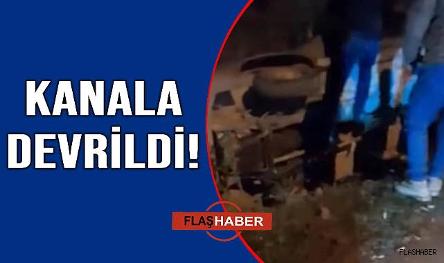 Kontrolden çıkan otomobil su kanalına devrildi