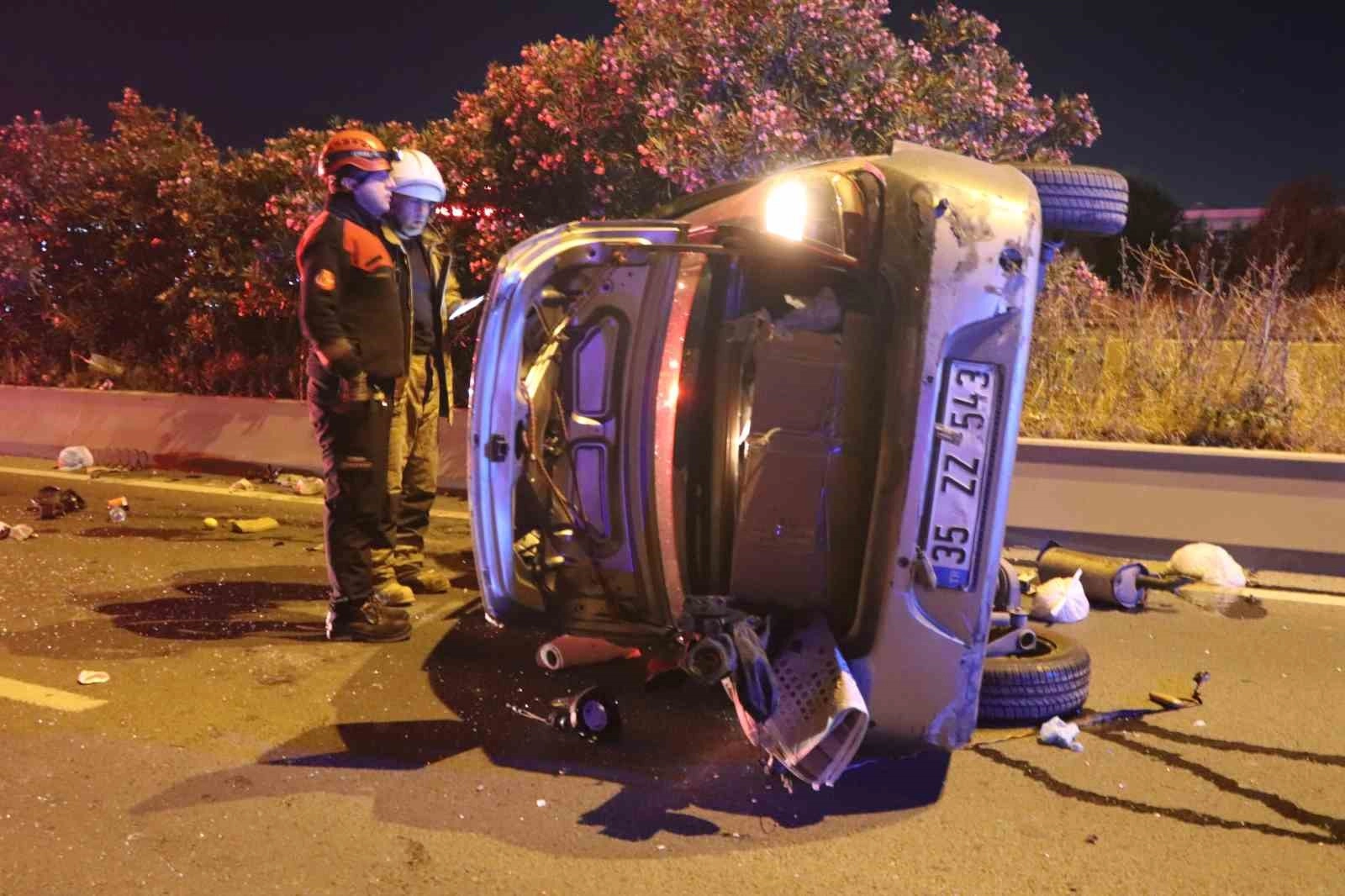 İzmir'de sürücüsünün kontrolünden çıkan otomobil takla attı. Kazada sürücü ağır yaralandı
