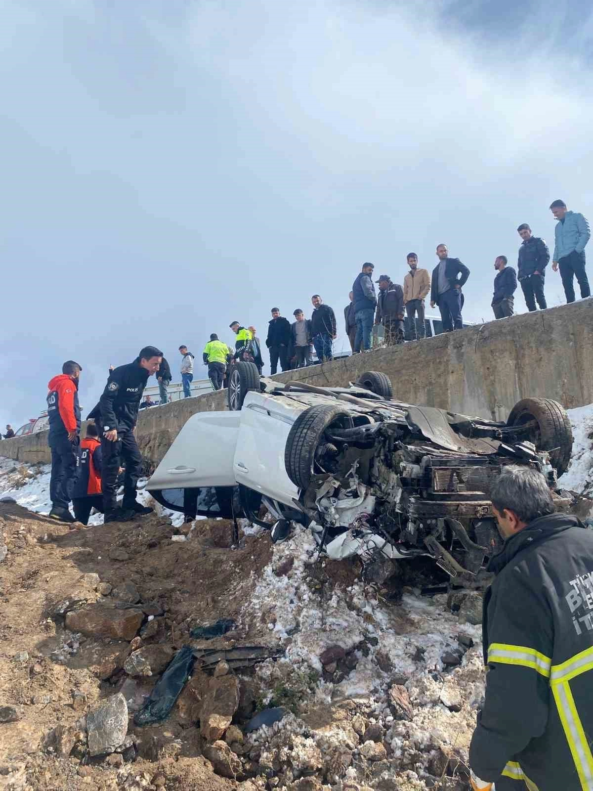 BİTLİS (İHA) – Bitlis'te kontrolden çıkan otomobilin yayaya çarptıktan sonra takla atarak uçuruma devrilmesi sonucu 1 kişi hayatını kaybederken, 1 kişi de yaralandı.