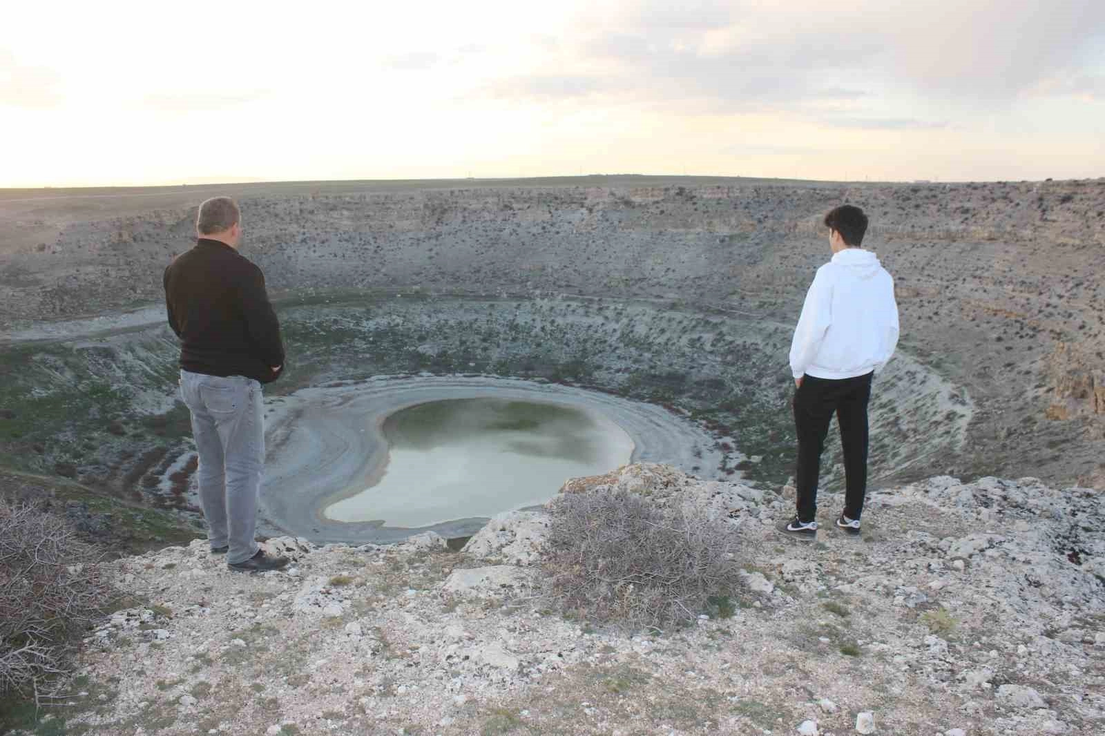 Konya'nın Karapınar ilçesinde bulunan Meyil Obruk Gölü'nün büyük bir bölümü yeraltı sularının çekilmesi ve kuraklık sebebi ile kurudu.