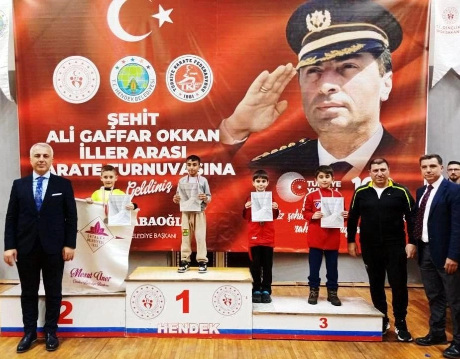 Sakarya'nın Hendek ilçesinde düzenlenen Şehit Emniyet Müdürü Ali Gaffar Okkan Karate Şampiyonasına katılan Körfezli karateciler, 3 altın 4 gümüş 3 bronz madalya kazandı.