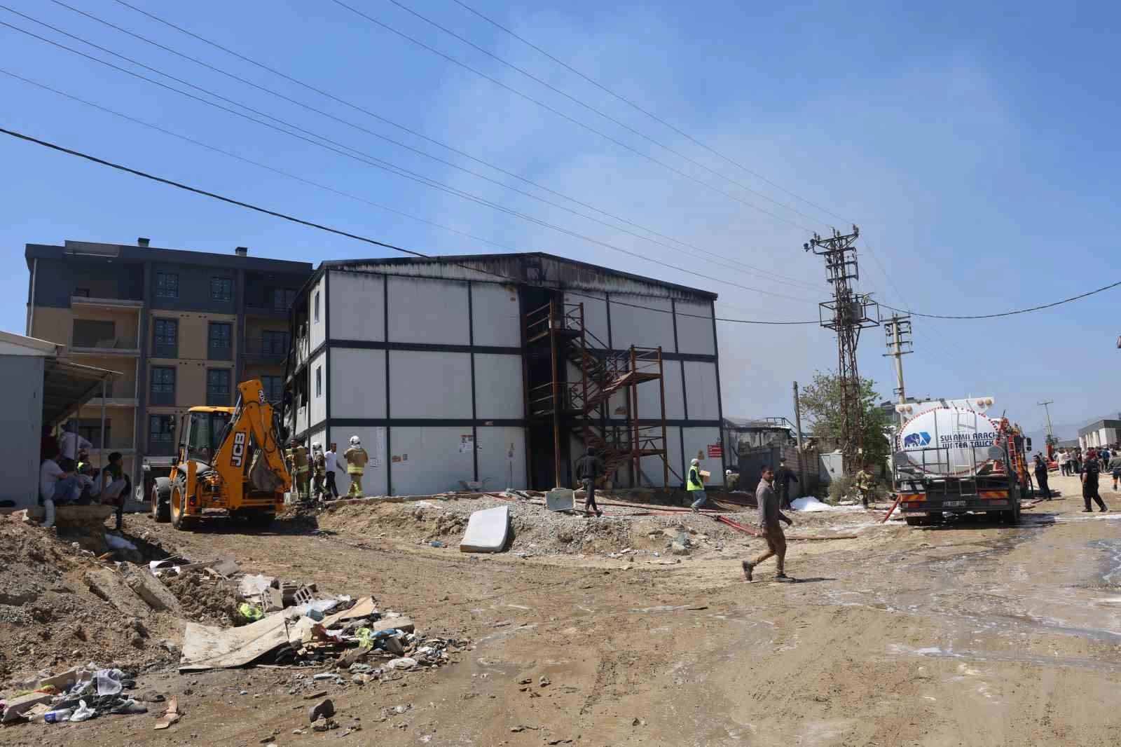 Hatay'da şantiye alanında işçilerin kaldığı konteyner yatakhane alevlere teslim oldu. Yanarak kullanılmaz hale gelen yatakhanede çıkan yangın yaralanma ve can kaybı yaşanmadan söndürüldü.