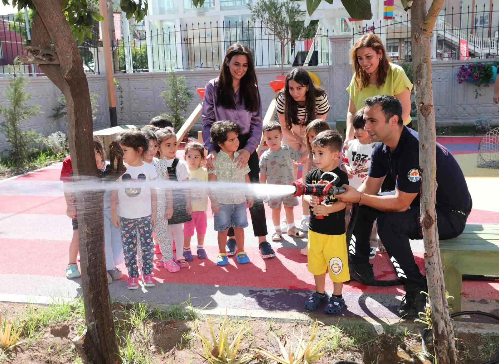 Yüreğir Belediyesi'ne bağlı Minik Yürekler Kreşi'nde çocuklara yangın tehlikelerine karşı bilinç oluşturmak amacıyla itfaiye eğitimi verildi.