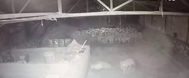 Adıyaman'da, ahırda bulunan koyun sürüsüne saldıran kurt, 2 koyunu telef etti. Meydana gelen saldırı ise kameralara saniye saniye yansıdı.