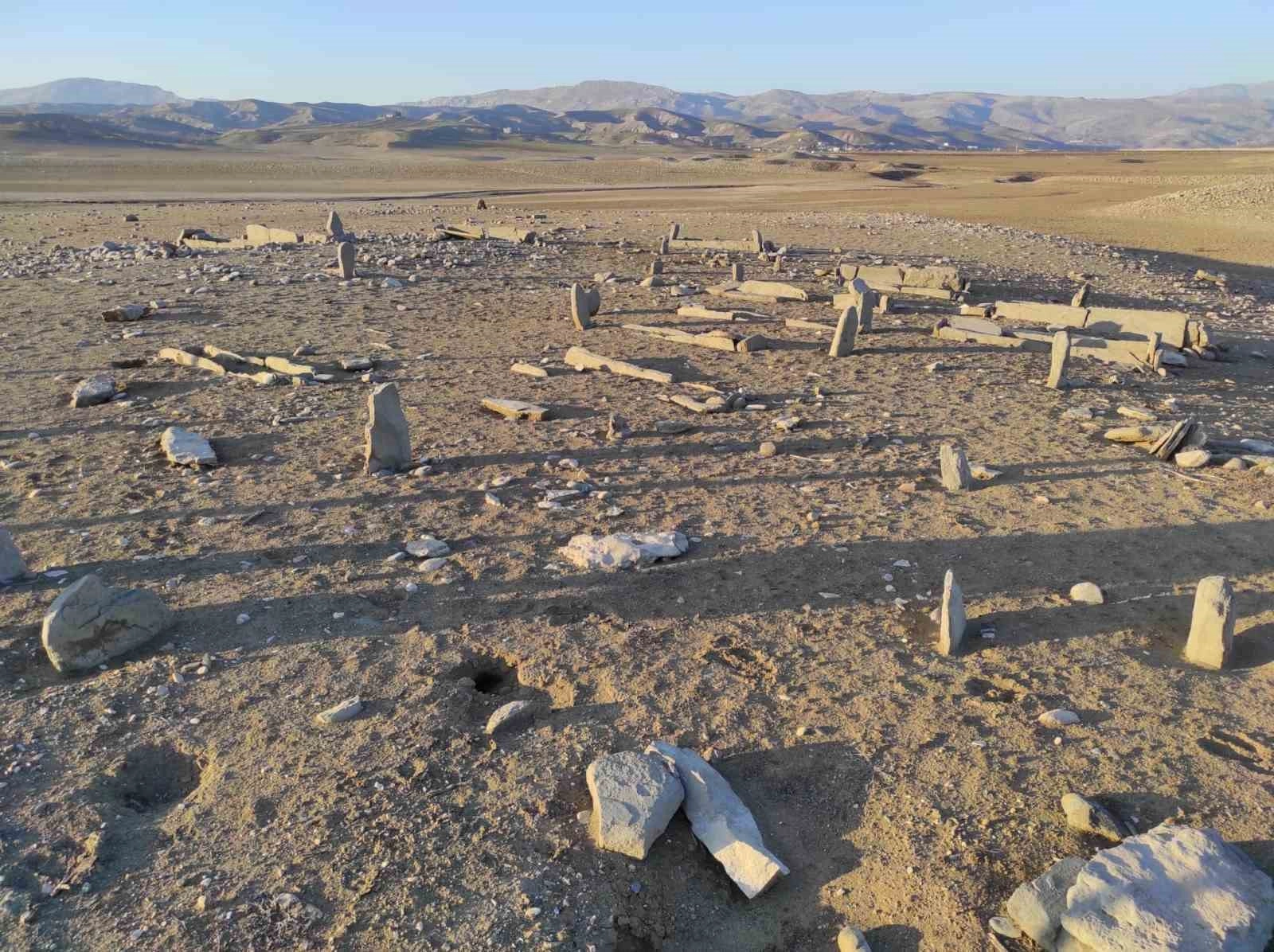 Kuruma noktasına gelen Batman Barajı, endişe verici boyuta ulaşırken, 25 yıl önce sular altında kalan mezarlıklar gün yüzüne çıktı.