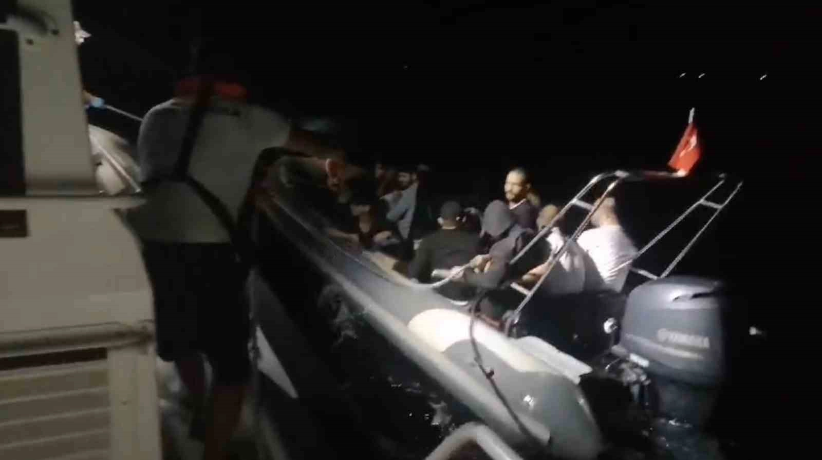Aydın'ın Kuşadası ilçesinde lastik bot içerisindeki 17 düzensiz göçmen kurtarıldı.