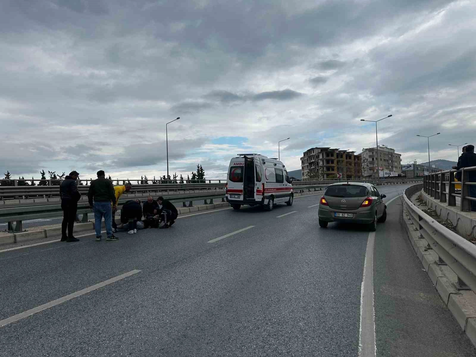 Kaza, Süleyman Demirel bulvarı üzerinde saat 13.00 sıralarında meydana geldi. Edinilen bilgiye göre, 09 K 3063 plakalı motosikleti ile seyir halinde ilerleyen M.Y., iddiaya göre kamyonetin sıkıştırması sürücü direksiyon hakimiyetini kaybetti. Kayarak düşen M.Y., metrelerce sürüklendi. Çevredeki vatandaşlar durumu 112 Acil Çağrı Merkezi'ne bildirdi. İhbar üzerine olay yerine gelen sağlık ekipleri yaralıyı ambulansla Kuşadası Devlet Hastanesi'ne kaldırarak tedavi altına aldı. Yaralı sürücünün hayati tehlikesinin bulunmadığı öğrenildi.
