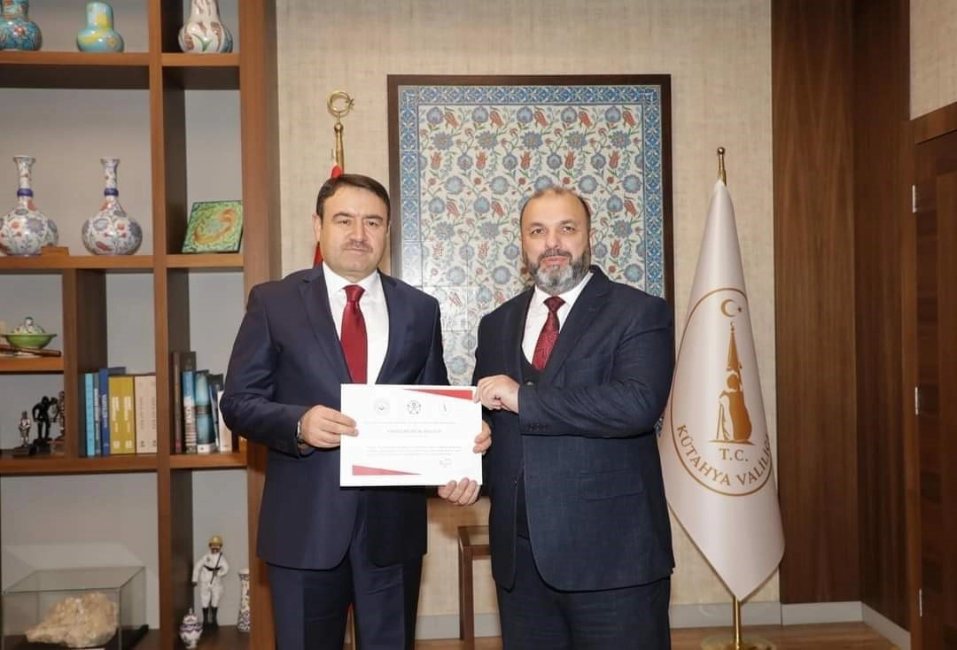 Kütahya Valisi Musa Işın, engelli vatandaşların Müftülük hizmetlerinden daha kolay yararlanmasını sağlayan çalışmaları nedeniyle İl Müftüsü Dr. İrfan Açık'a 'Erişilebilirlik belgesi' verdi.