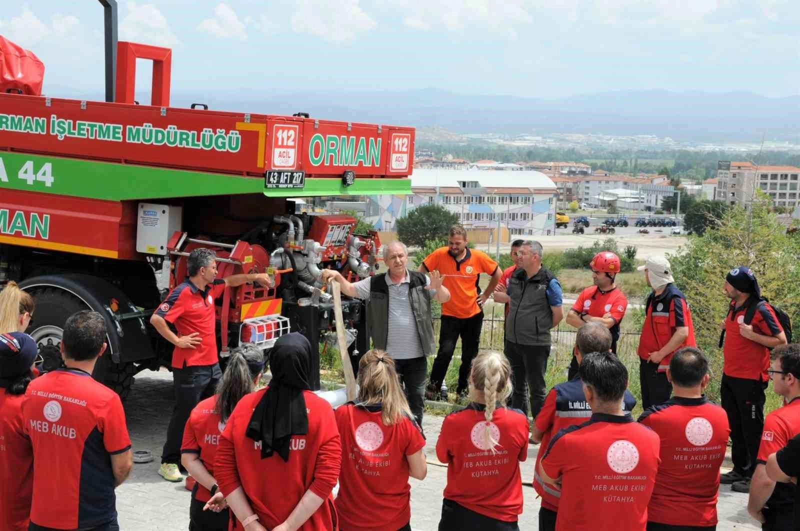 İl Milli Eğitim Müdürlüğü tarafından kurulan 39 kişilik AKUB ve Doğa Koruma Milli Parklar Şube Müdürlüğünden 10 kişi olmak üzere toplam 49 kişiye orman yangınları ile mücadele gönüllüsü eğitimi Orman İşletme Şefi Niyazi Hakan Dinkçi tarafından verildi. Ardından arazide Makine Mühendisleri Akif Eltan ve Hakan Öksüm tarafından arazözler hakkında bilgi verildi.