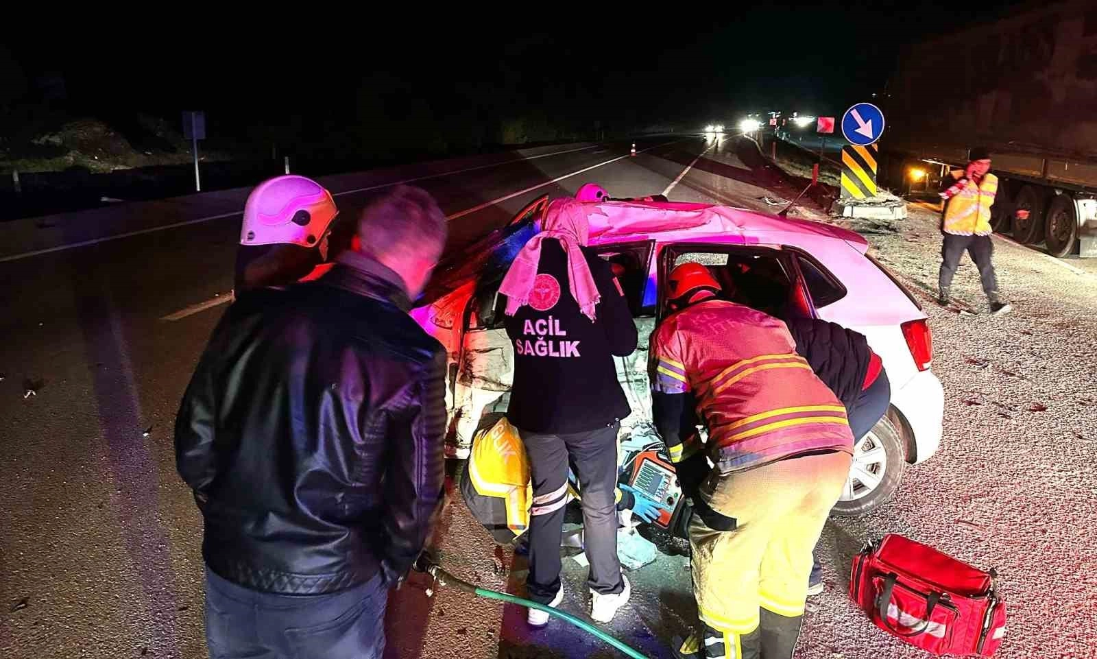Alınan bilgiye göre, Abdulkadir G. idaresindeki 20 SH 460 plakalı tır ile Ahmet Sait Gökgün yönetimindeki 43 LB 608 plakalı otomobil çarpıştı. Kazada, 63 yaşındaki otomobil sürücüsü Ahmet Sait Gökgün olay yerinde hayatını kaybederken, eşi Aynur G.'de yaralandı.