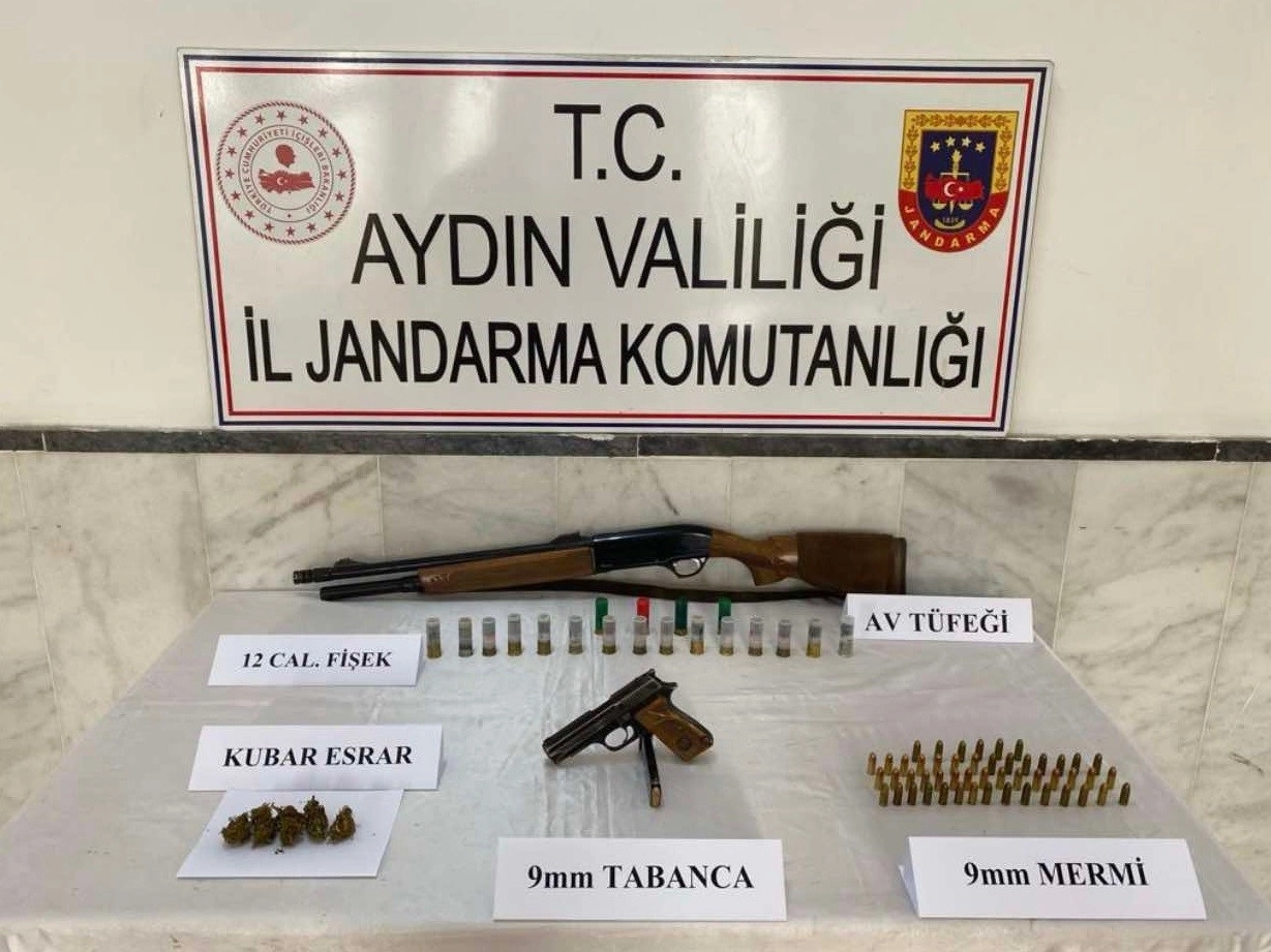 Aydın İl Jandarma Komutanlığı, KOM Şube Müdürlüğü ve Kuyucak İlçe Jandarma Komutanlığı ekiplerince uyuşturucu madde imal ve ticaretini yapan şahsa yönelik koordineli çalışma başlatıldı. Dereköy Mahallesi'nde C.A isimli şüphelinin ikametinde ve eklentilerinde yapılan aramada 11 gram kubar esrar, 1 adet tabanca, 1 adet ruhsatsız av tüfeği, 62 adet tabanca/av tüfeği mühimmatı ele geçirildi. Şüphelinin sağlık kuruluşunda yapılan testinde uyuşturucu madde kullandığı tespit edildi. Olayla ilgili adli sürecin devam ettiği öğrenildi.