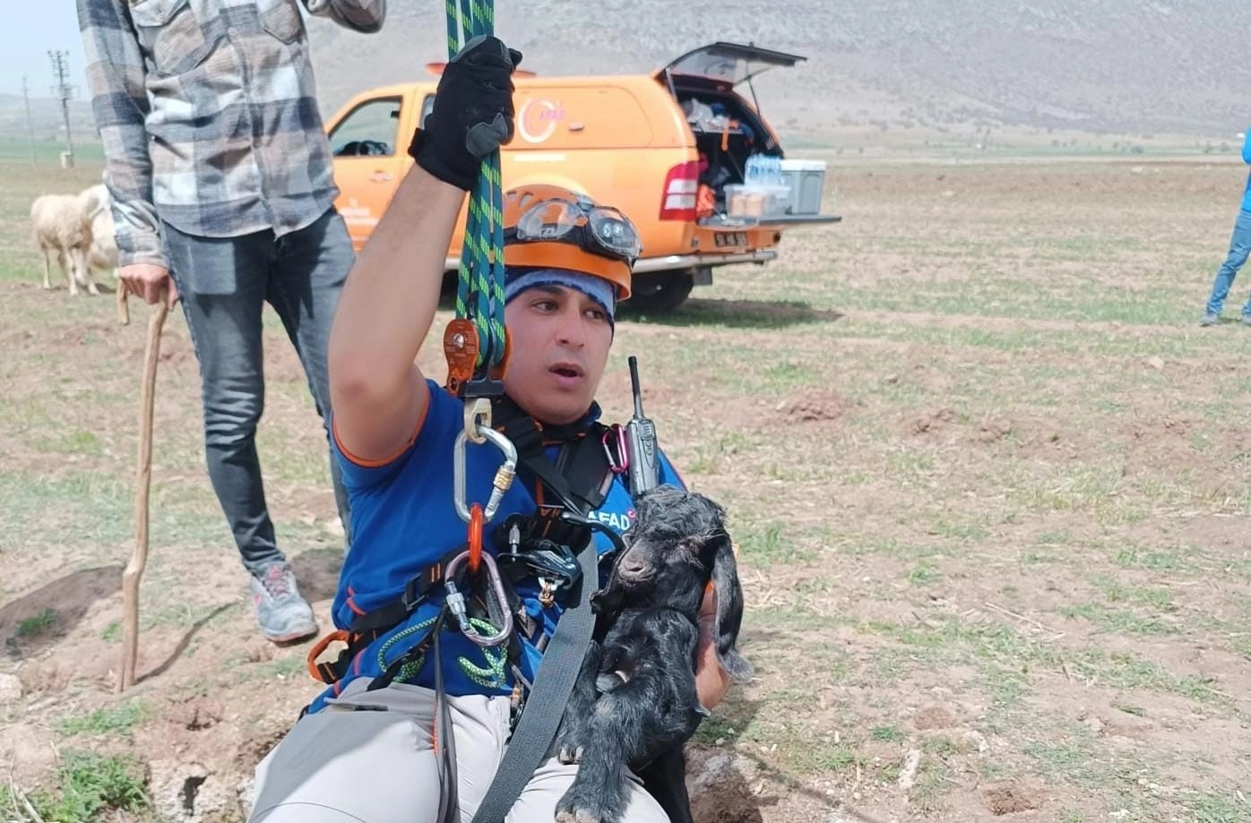 Niğde'de kullanılmayan 12 metrelik su kuyusuna düşen oğlak olay yerine çağrılan AFAD ekipleri tarafından kurtarıldı.