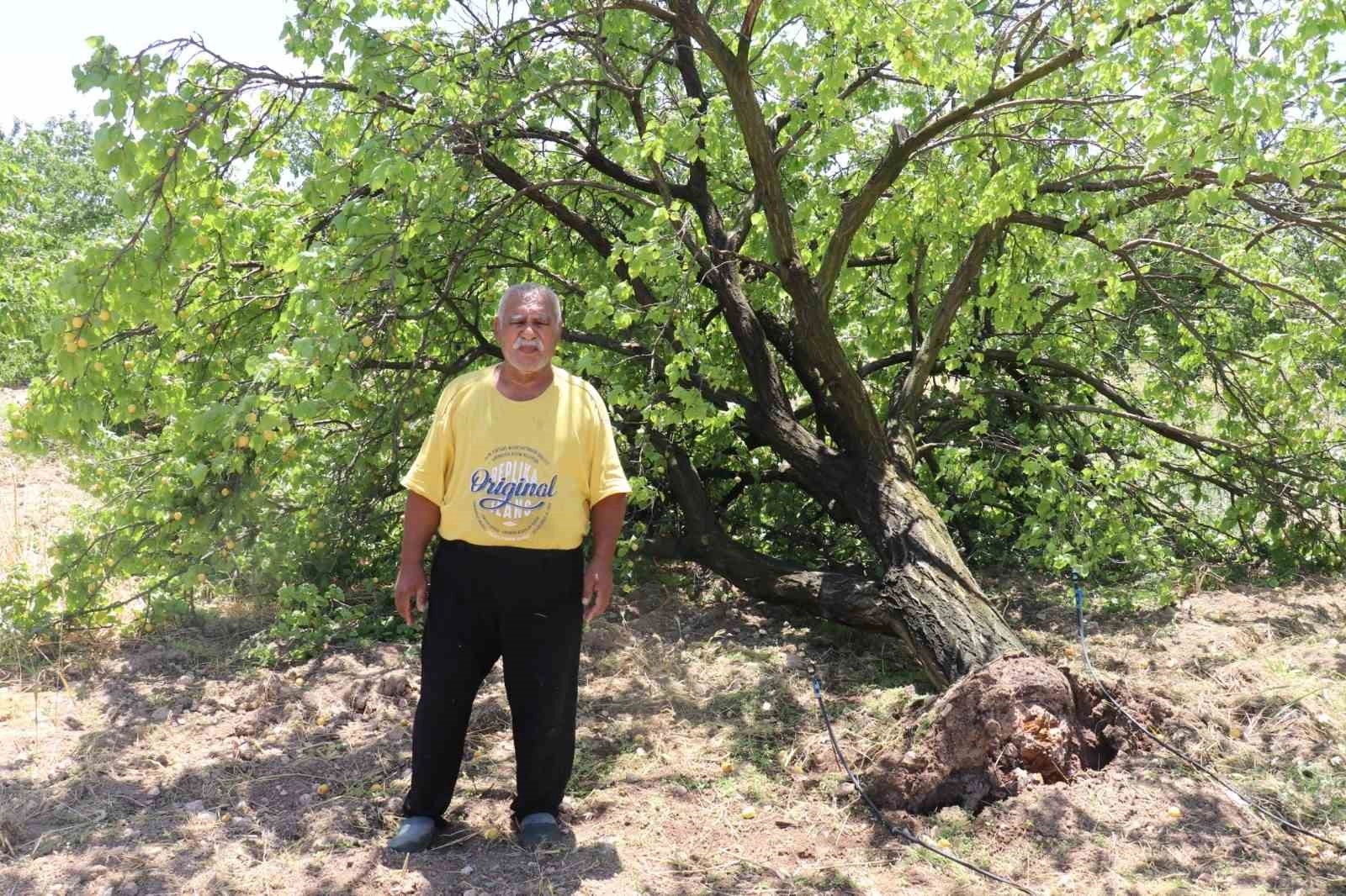 Malatya'nın Battalgazi ilçesinde kısa süre etkili olan şiddetli fırtına kayısı ağaçlarını kökünden söktü. Hasada günler kala meydana gelen olayda büyük ölçekte meyve kaybı yaşayan üreticiler neye uğradıklarını şaşırdıklarını söyledi.