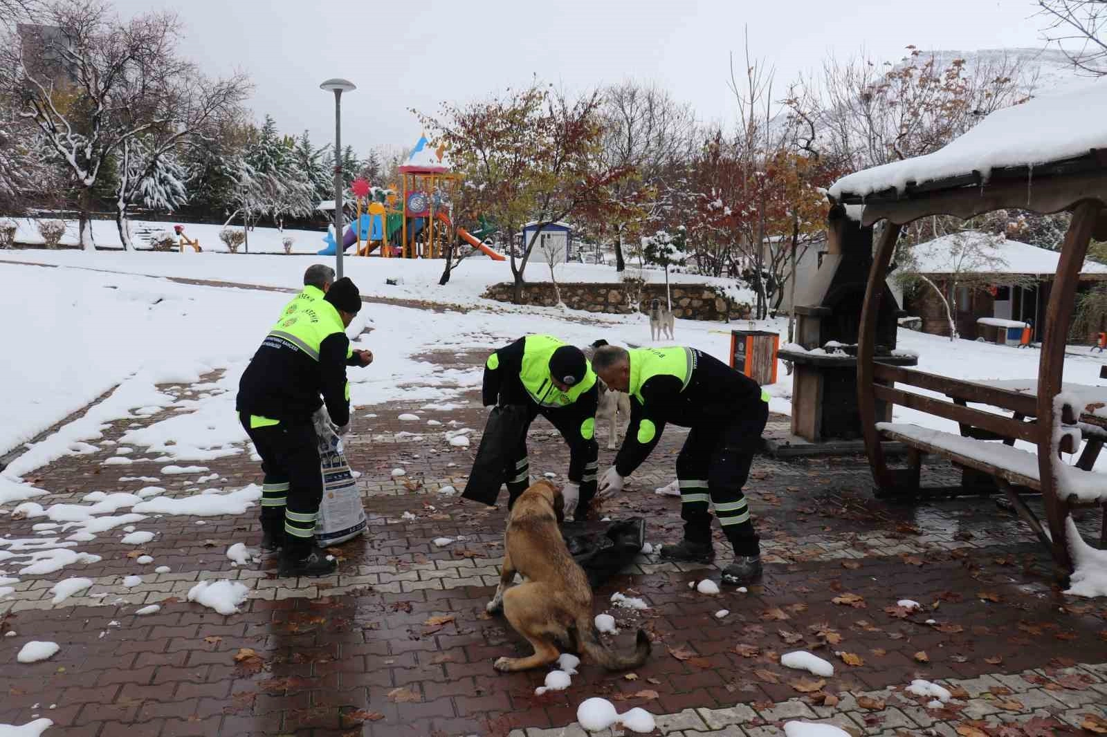 Malatya'da zorlu kış şartlarında yiyecek bulmakta zorlanan sokak hayvanları için kentin belli noktalarına yem bırakıldı.