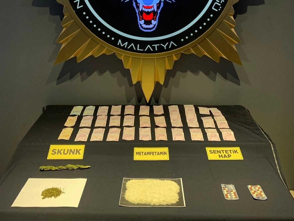 Malatya'da, İl Emniyet Müdürlüğü Narkotik Suçlarla Mücadele Şube Müdürlüğü ve Yeşilyurt İlçe Emniyet Müdürlüğü'ne bağlı Devriye Ekipler Amirliği ekiplerince "torbacı" olarak tabir edilen sokak satıcılarına yönelik operasyon düzenlendi. Operasyonda 308,5 gram metamfetamin maddesi, 1.29 gram skunk maddesi, 21,33 gram esrar maddesi, 9.02 gram esrar maddesi, 25 adet reçete tabi hap ile 6 bin 100 TL para ele geçirildi.