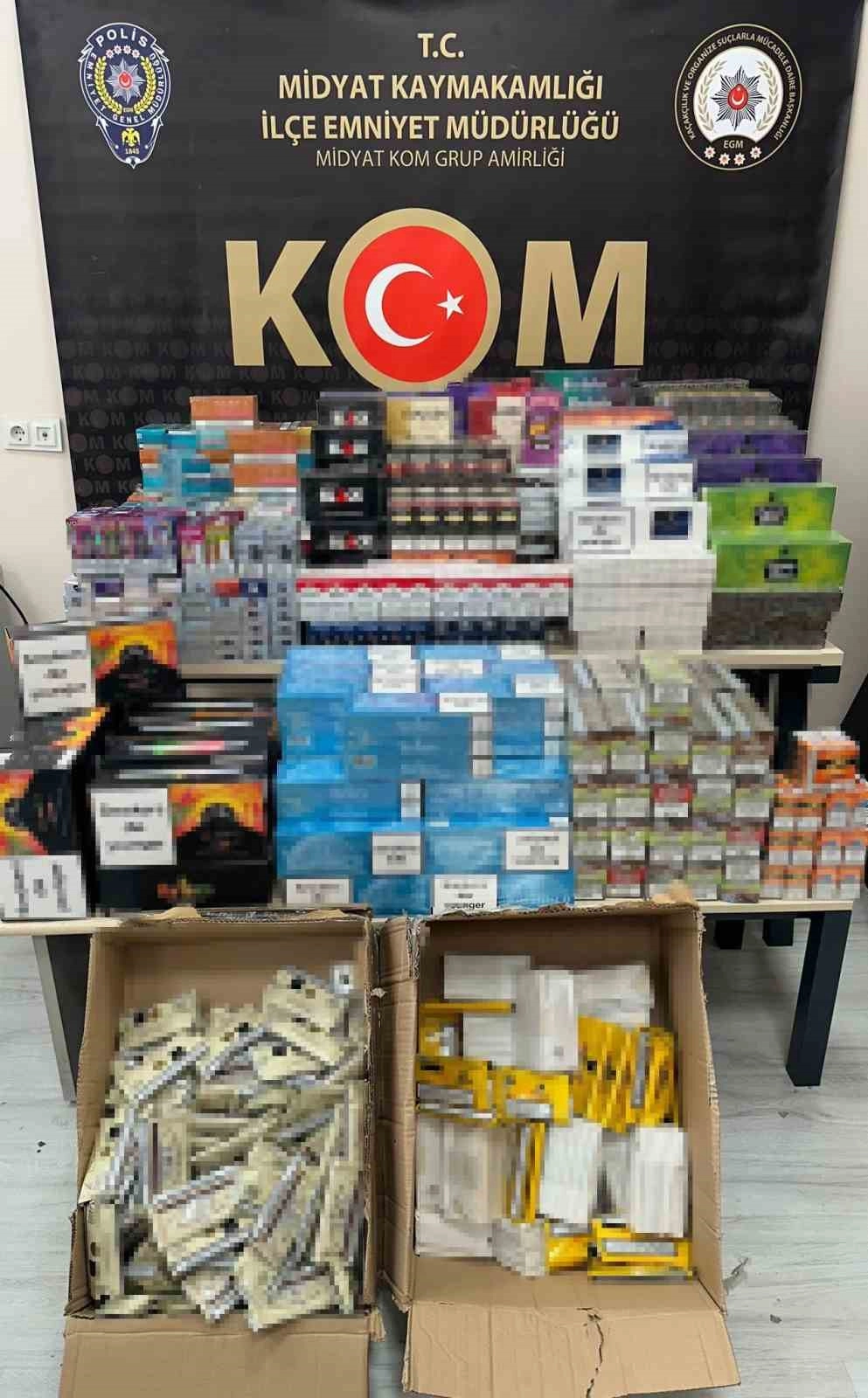 Bu çerçevede Midyat ilçesinde yapılan operasyonlarda 4 bin 290 paket kaçak sigara, 2 bin 150 adet puro, bin 130 paket elektronik sigara tütünü ve 200 adet elektronik nargile ve 200 paket pipo tütünü ele geçirildi.
