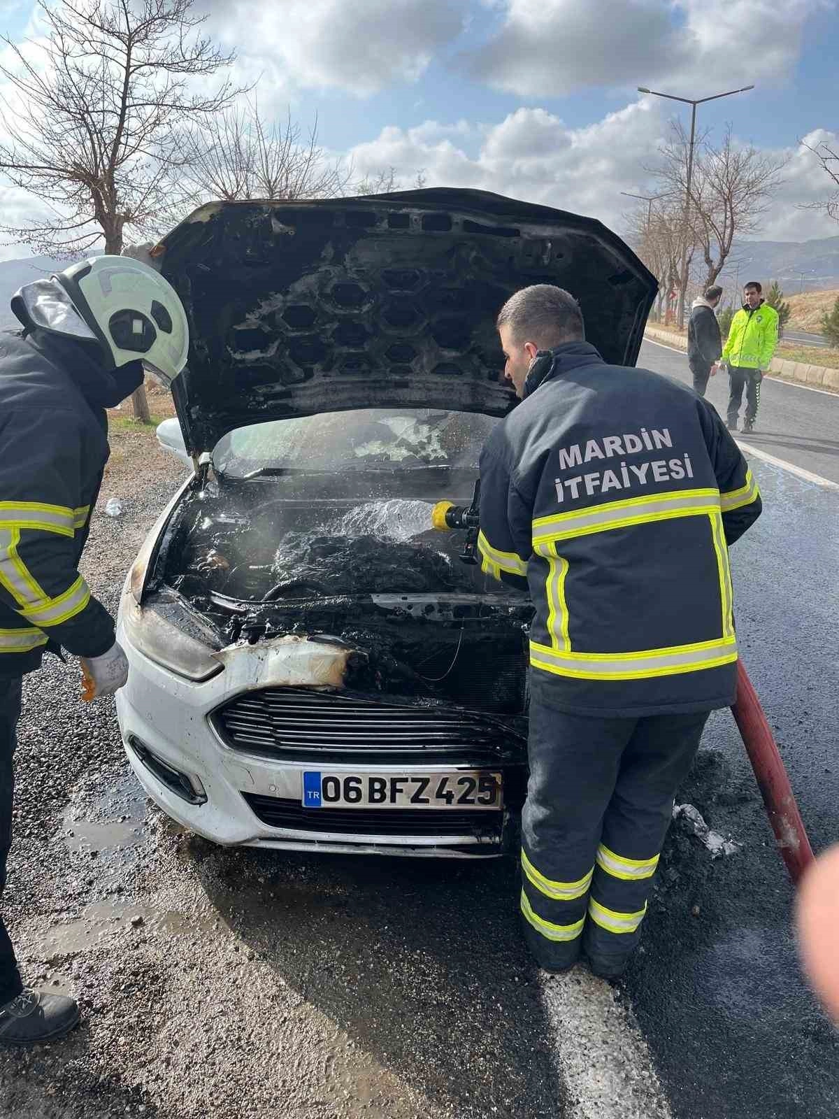 Mardin'de seyir halindeki otomobil yanarak kullanılmaz hale geldi.