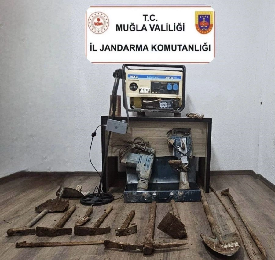 Muğla İl Jandarma Komutanlığı ekipleri, Selimiye Mahallesi Kızılköy Sokak'ta kaçak kazı yapıldığı ihbarı üzerine operasyon düzenledi. Operasyonda E.G., S.Ş., Y.Y., A.Ö., E.Ç. ve M.D. isimli şüpheliler kazı yaparken suçüstü yakalandı. Olay yerinde yapılan aramalarda 5 adet el yapımı patlayıcı kartuş, 1 adet 3D ultrason dedektör, 1 jeneratör, 2 hilti ve uç takımı ile kazıda kullanılan çeşitli aletler ele geçirildi. Ayrıca muhtelif patlayıcı madde kalıntılarına rastlandı. Gözaltına alınan 6 şüpheliden 5'i jandarmadaki işlemlerinin ardından sevk edildikleri mahkemece tutuklanırken, 1 kişi ise adli kontrol şartıyla serbest bırakıldı.