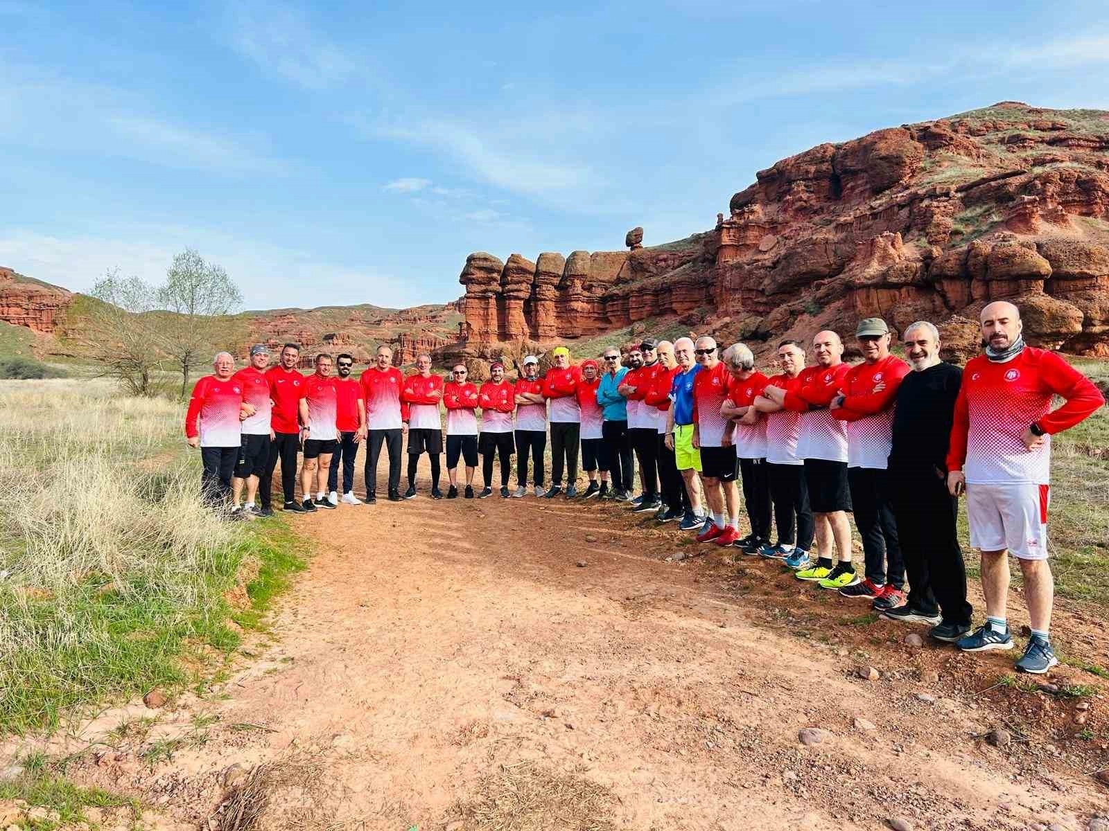 Çeşitli mesleklerde çalışan, esnaf, akademisyen, emekli ve yöneticilik yapan 35 ile 70 yaş üzerindeki kişilerin bir araya geldiği Palandöken Masterler Koşu Grubu, bu defa Narmanlı Peri Bacaları'nda koştu.