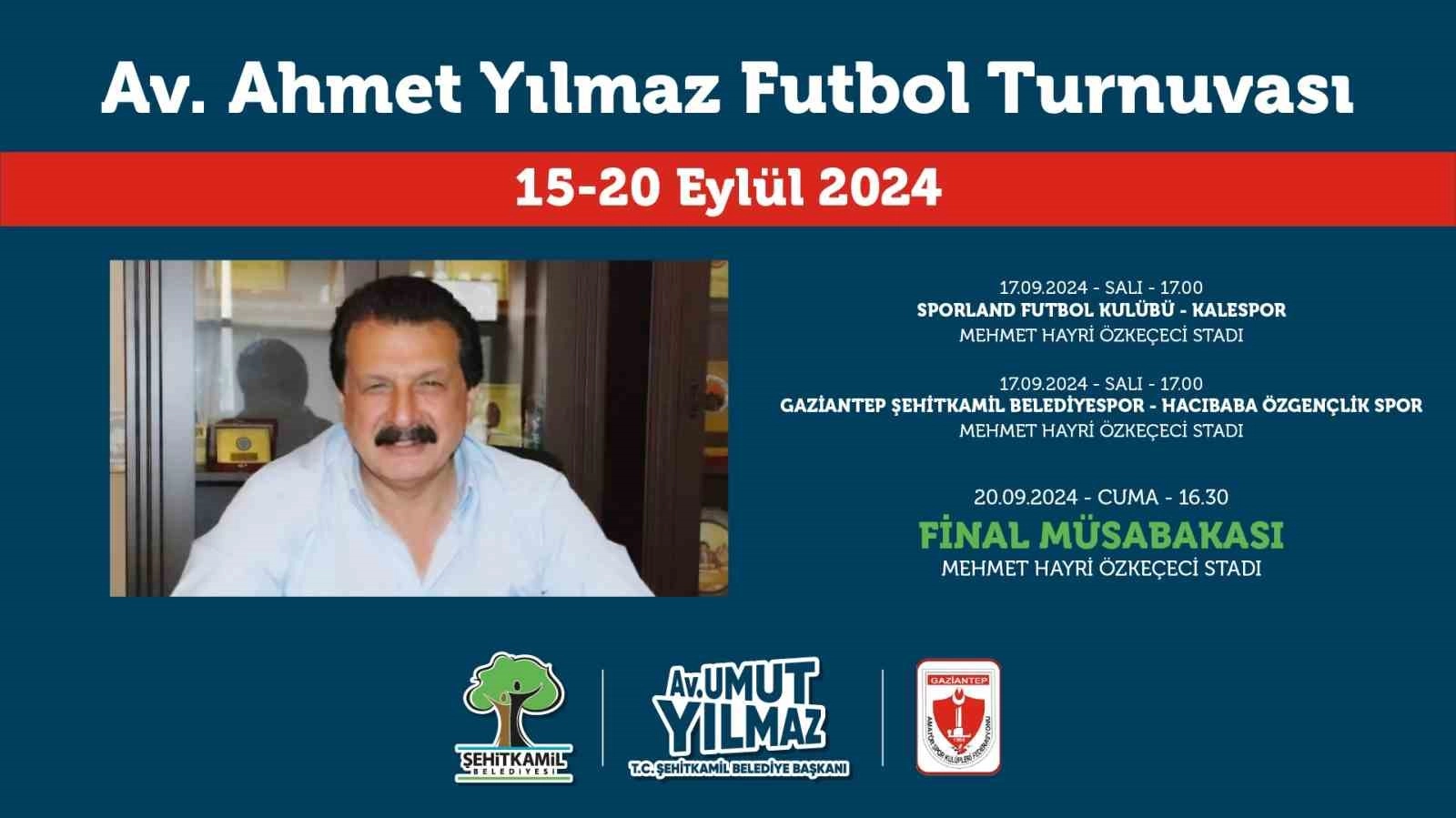 Şehitkamil Belediyesi, ilçenin ilk belediye başkanı merhum Av. Ahmet Yılmaz anısına düzenlediği futbol turnuvası ile sporseverleri bir araya getiriyor. Şehitkamil Belediye Başkanı Umut Yılmaz, turnuvaya tüm sporseverleri davet etti.