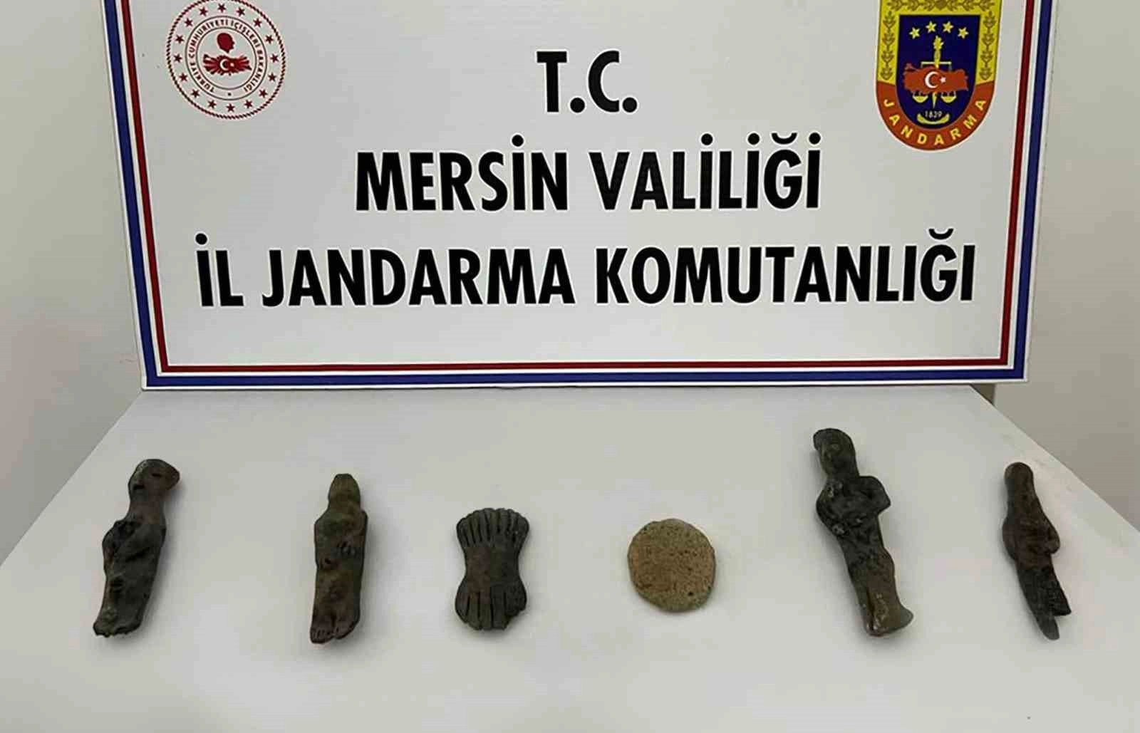 İl Jandarma Komutanlığından yapılan açıklamaya göre, bir istihbaratı değerlendiren ekipler, Toroslar ilçesine bağlı Arslanköy Mahallesi'nde elinde tarihi eser bulunduğu belirlenen bir şahsı takibe aldı. Yapılan takip ve araştırma sonrası düzenlenen operasyonda şüpheli şahıs gözaltına alınırken, evinde ve aracında yapılan aramalarda 6 adet insan figürlü heykel ele geçirildi. Ele geçirilen malzemeler incelenmek üzere Mersin Müze Müdürlüğüne teslim edilirken, soruşturmanın sürdüğü bildirildi.