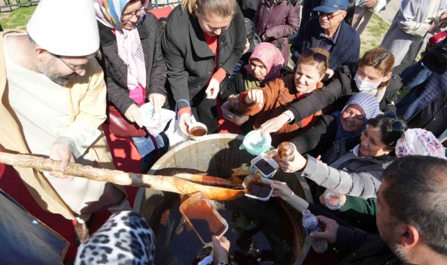 Manisalılar kazanda karılan mesirden almak için birbirleriyle yarıştı