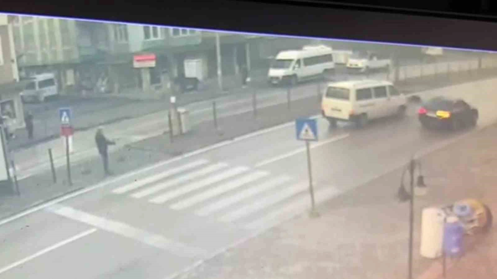 Görüntülerde hızla gelen minibüsün yolun karşısına geçmeye çalışan araca çarptığı ve aracın yaklaşık çarptıktan 5 metre sonra durduğu görülüyor.