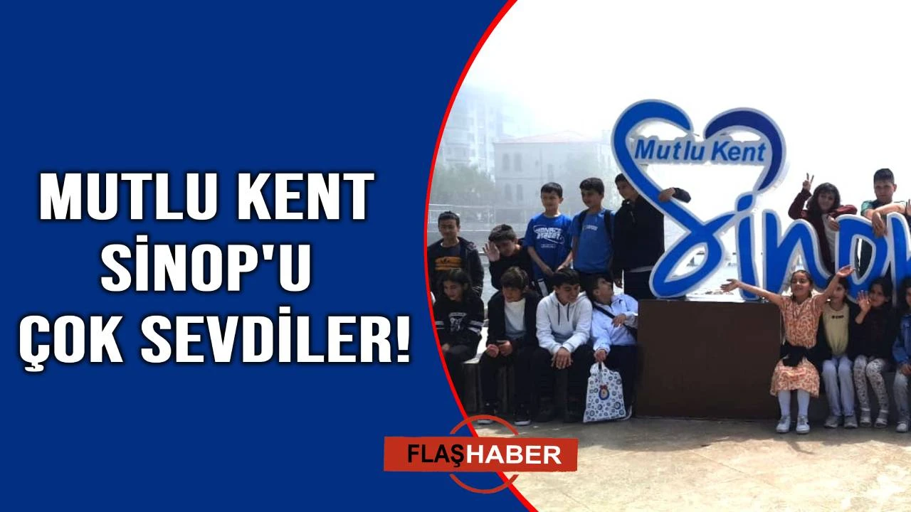 Öğrenciler, sahilde yer alan “Mutlu Şehir Sinop” yazılı tabela önünde hatıra fotoğrafı çektirerek mutlu anlar yaşadı.
