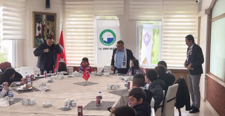 Sinop Valisi Dr. Mustafa Özarslan’ın öncülüğünde gerçekleştirilen programda, Vali Yardımcısı Taner Bolat, Boyabat Kaymakamı Enver Yılmaz ve Sinopspor Kulübü Başkanı Mahmut Özyılmaz, Boyabat’tan gelen minik taraftarları ağırladı.