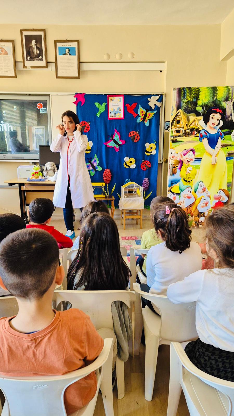Sinop İl Tarım ve Orman Müdürlüğü Koordinasyon ve Tarımsal Veriler Şube Müdürü Sezai Aydın ve Veteriner Hekim Hatice Ece Baş tarafından öğrencilere , Tarım ve Orman Bakanlığı bünyesinde olduğu gibi pek çok farklı sektörde önemli görevler yürüten Veteriner Hekimliği mesleği, oyun temelli etkinlikler ve video gösterimi ile birlikte anlatıldı.