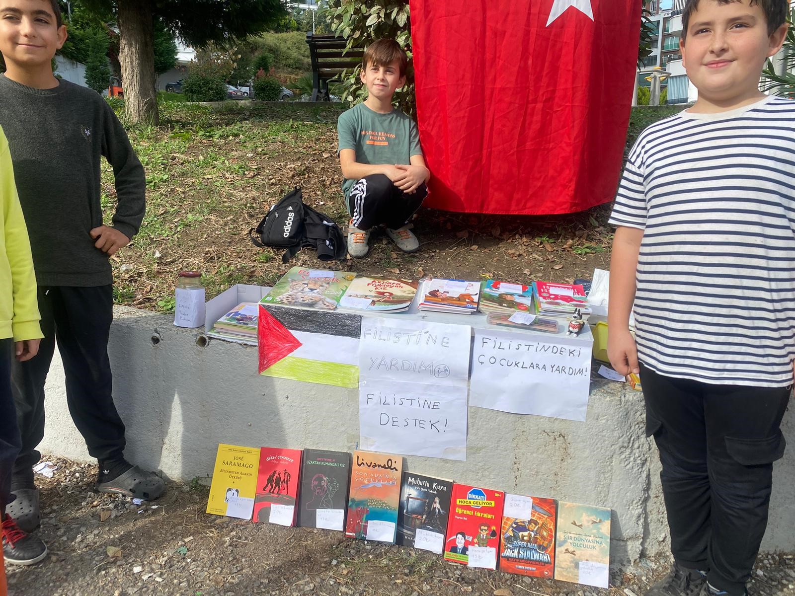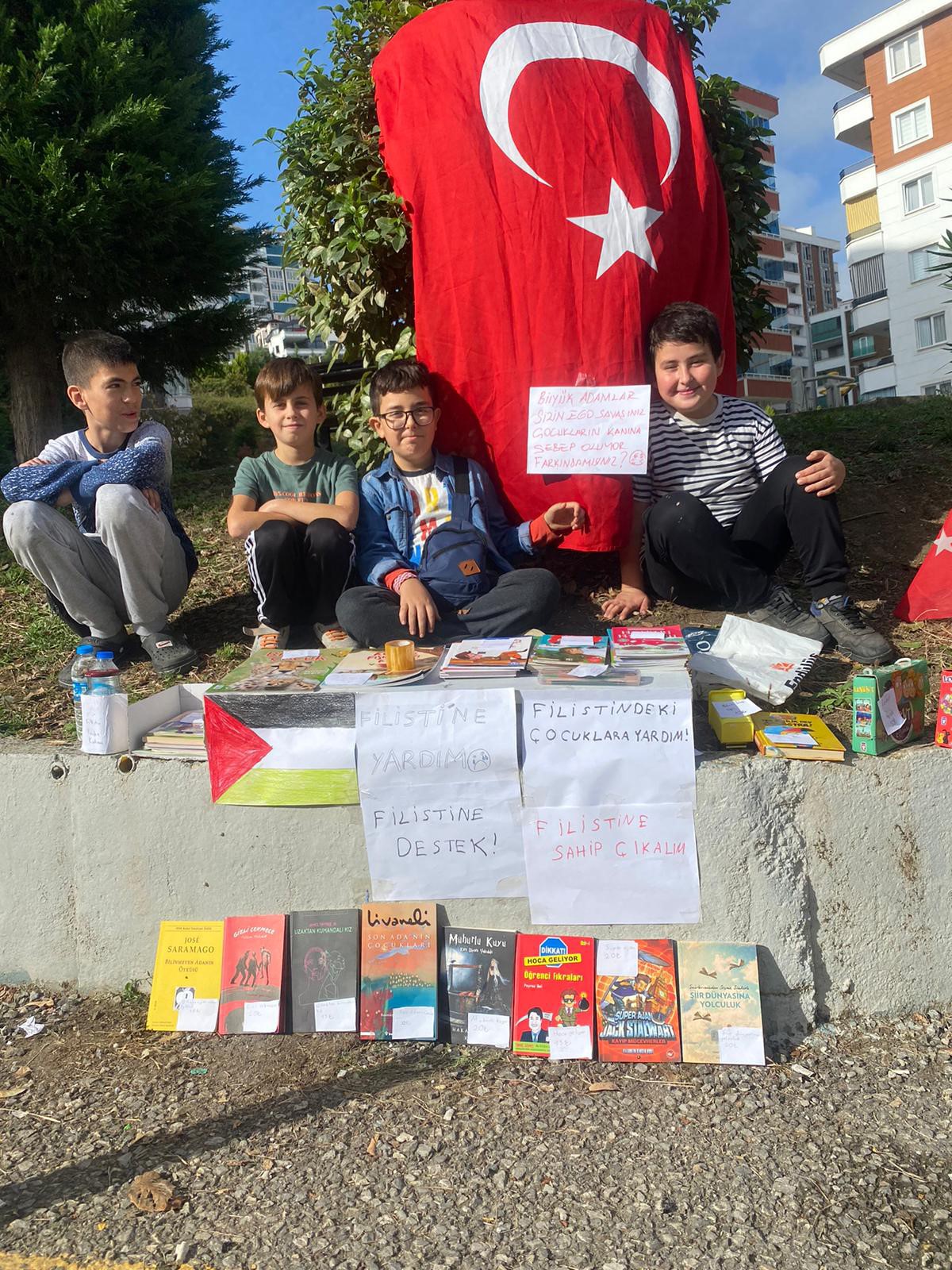 “Filistin’e sahip çıkalım“ sloganı ile harekete geçen ve Atakum’da Yeni Mahallede ikamet eden 4. sınıf öğrencileri Musab Yağız Yerişkin, Ömer Kaan Baycan, 5. sınıf öğrencileri Arda Özçelik, Muhammet Kaya, 6. sınıf öğrencisi Ahmet Kaptanoğlu ve 2. sınıf öğrencisi Ahmet, oturdukları Atakent Sitesindeki evlerinin önünde açtıkları sergide kendilerine ait eşyalarını, kitap ve oyuncaklarını Filistinli kardeşleri için sattıklarını belirtiler.