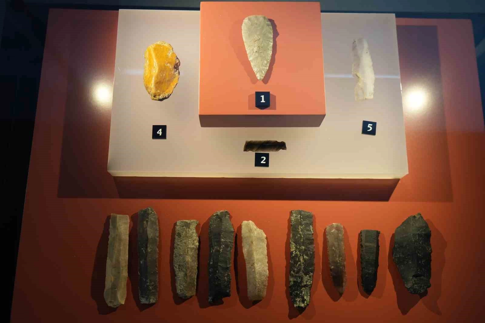MÖ 5900-3200 yılları arasındaki Kalkolitik Çağ'a ait volkanik cam kaya dilgi de müzede yer alıyor