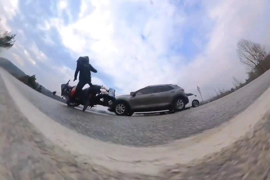 Kaza anı ise motosikletin aksiyon kamerasına saniye saniye yansıdı.