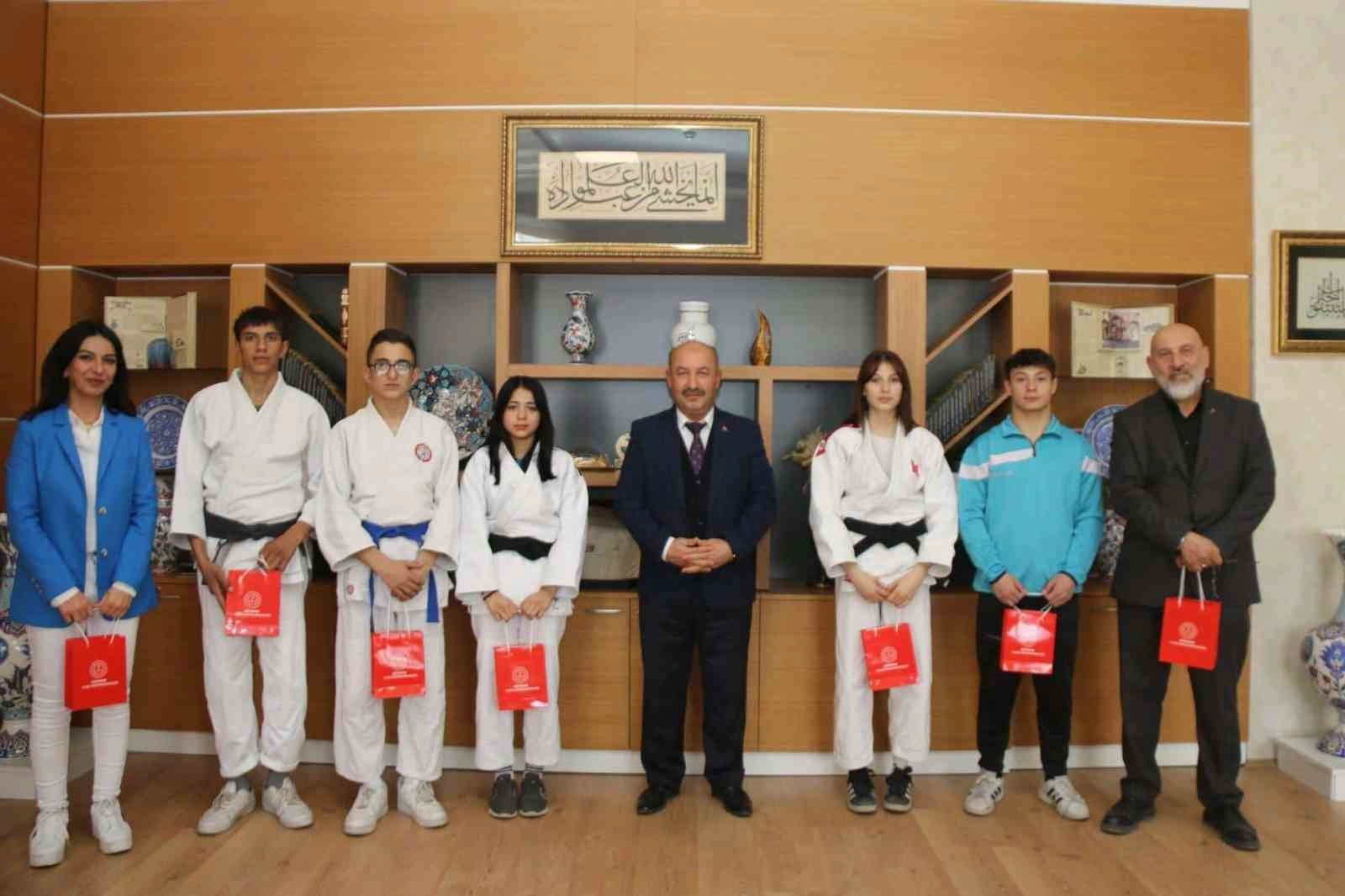 Prof. Dr. Necmettin Erbakan Mesleki ve Teknik Anadolu Lisesi öğrencilerinden paralimpik judo branşında Türkiye ikincisi olan ve milli takıma seçilen Muhittin Uzma, yine paralimpik judo branşında Türkiye ikincisi olan İbrahim Sarp ile judo branşında Türkiye ikincisi olan Ayşenur Turhan, Ayşegül Baran, Türkiye üçüncüsü olan Ahmet Erdem Ay İl Milli Eğitim Müdürü Hasan Başyiğit'i makamında ziyaret etti.